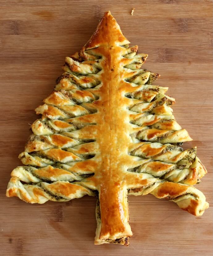 Sapin de Noël feuilleté au pesto